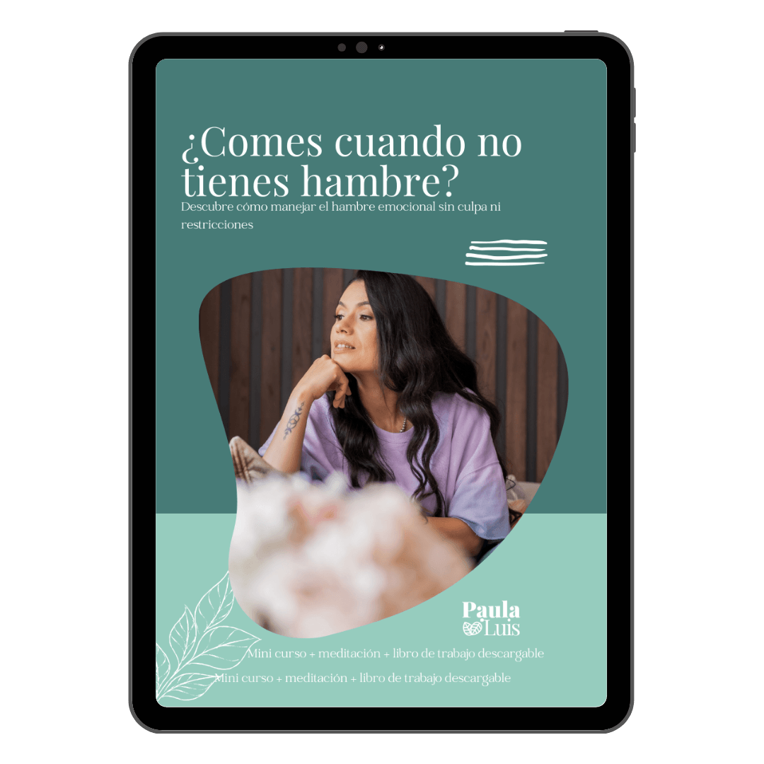 Este mini curso está diseñado para ti. Un espacio íntimo, práctico y amoroso donde aprenderás a identificar lo que realmente necesitas en esos momentos… y a dejar de recurrir a la comida como única respuesta emocional.